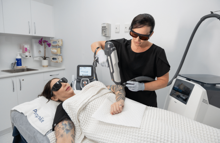 Say goodbye to unwanted tattoos with Laser Tattoo Removal at Prophile Clinics, a cutting-edge solution for fading or completely erasing tattoo ink. Our advanced laser technology works by breaking down ink particles into smaller fragments, which are then naturally processed by the body. This treatment is safe for various skin types and ink colours, offering a personalised and effective approach to tattoo removal with minimal downtime.